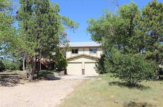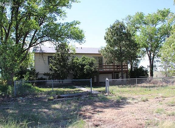 Nice 3 bed, 2 bath bi-level home on 40 acres east of Colorado Springs. 1829 sq ft home built in 1974 with attached 2 car garage and additional 3 car storage building. Mature trees, mountain views, fenced back yard, front and rear decks. Convenient location for commute to Colorado Springs, Shriever or Peterson Air Force Base on Hwy 94. This home could be your dream opportunity to live the country life yet still be close to town! Spacious Kitchen with electric range oven, refrigerator , dishwasher, room for a small eat in table, and walk out door to deck. Living Room with carpet, large window with Peak views, hookup for gas stove. Dining Room with carpet, open and bright room with slider to back deck. Master Bedroom with carpet, 2 wall closets, attached 3/4 bath. Other Bedrooms 11x13 and 11x10, both with carpet, nice sized closets and mountain views. Family Room on lower level with carpet, brick wood burning fireplace with seat, door to attached 2 car garage. Other Rooms: Main full bathroom on upper level, 10x10 utility and laundry room on lower level, large storage room attached to heated 2 car garage. Other Features: 2 nice sized wood decks, one in front, one in back; back yard is fenced; large storage building/garage with 3 single car overhead doors cement floor. Fresh paint on the outside and inside of home, home could use carpet and windows.