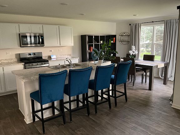 4 bedroom, 2.5 baths, full basement with 2 car garage home. House is on a premium corner lot with no neighbors behind. Light and bright kitchen with white cabinetry and stainless-steel appliances. Plenty of storage with a large island that overhangs for stools, a breakfast bar, and a large walk-in pantry. Upstairs, there's a generously sized primary suite with a huge walk-in closet! Private bath with oversized raised height, dual sink vanity with plenty of bath storage space, and large stand-up shower. Additional secondary bathroom upstairs features a double bowl sink and privacy door between the vanity and bathroom/shower area. Spacious laundry room is conveniently located on the 2nd floor. Home is within walking distance to amenities including clubhouse, pool, park, tennis court, sand volleyball court, and playground as well as onsite elementary school. House is energy efficient with smart home technology features.