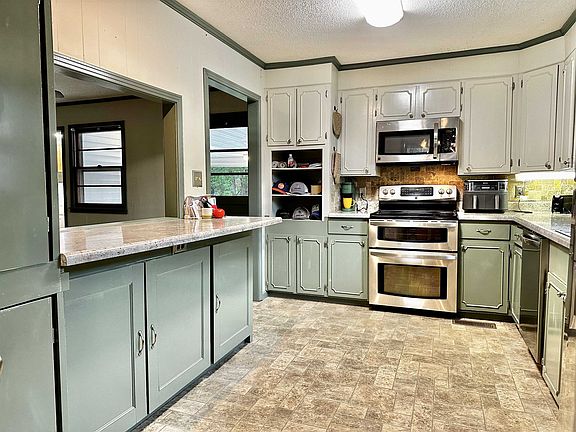 Easy 1-level living. 3 bedroom 2 bath brick home, situated on a shaded 0.58 acre lot, on a dead-end street, in the quaint town of Trenton. Easily accessible to major roadways, schools, and shopping. Functional kitchen with stainless steel appliances, built-in pantry cabinet, work counter, large, separate breakfast area, and adjacent formal dining room. All appliances remain, including washer, dryer, and refrigerator. Large, walk-in coat closet in hall. 24x17 attached, side-entry carport plus separate, 28x20 front-entry wired workshop. Dog run/fenced-in area in the backyard. 22x7 heated and cooled utility room off of the carport would make an ideal home office, woodworking shop, or storage space. Covered front porch and shaded backyard are perfect for relaxing outdoors on a hot summer day.