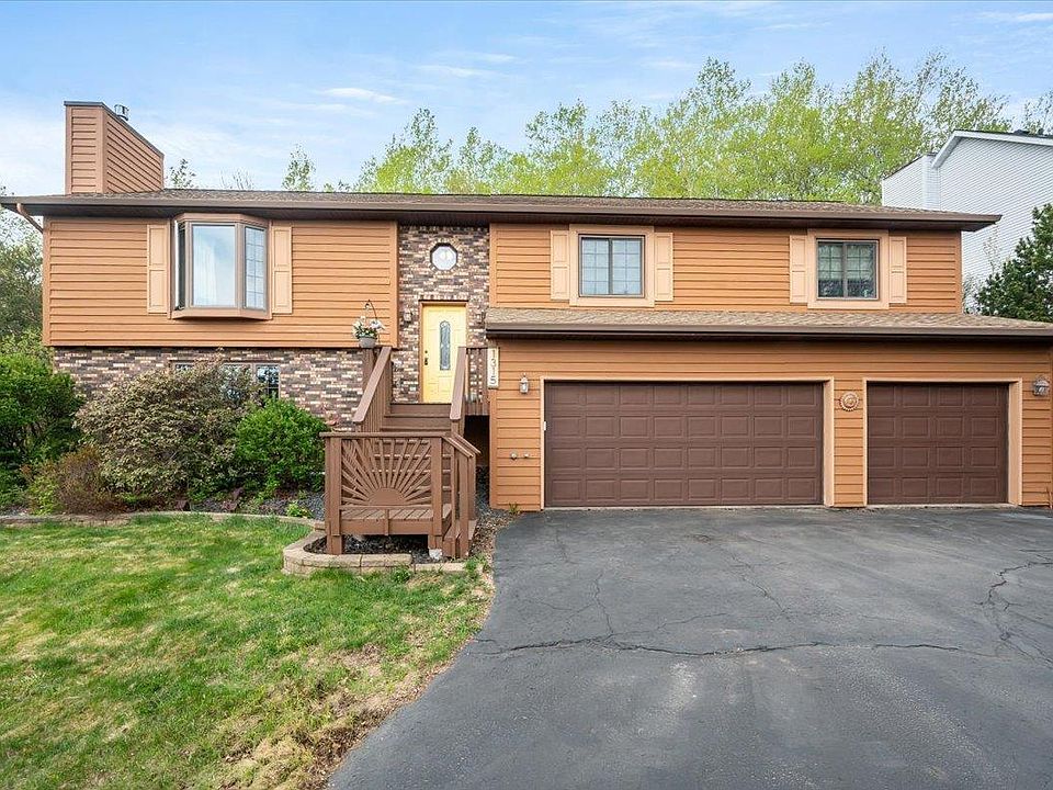 Tucked away on a quiet dead-end street in the desirable Lakeside neighborhood (not far from Brighton Beach and 12th Street Beach), this hidden gem sits on a beautiful 1/4-acre lot with wooded privacy and stunning lake views from the upper deck. The thoughtfully designed split-level layout features a spacious living room with natural light flowing in through large windows, an inviting eat-in kitchen with a charming shiplap accent wall, and a dining area that opens to an expansive back trex composite deck (with approximately 7 years left on a transferrable warranty)—perfect for entertaining or relaxing in nature. Upstairs includes three bedrooms and two full baths, including a primary suite with a private bath and walk-in closet. The lower level offers even more living space with a cozy rec room featuring a gas fireplace, a fourth bedroom, a 3/4 bath with a sauna, and a laundry/storage room. You'll also appreciate the convenience of the heated three-car tuck-under garage with a new smart garage door opener (camera equipped) installed in one bay. Water heater was installed in 2023 and the roof is under an active transferrable warranty. With its prime location, functional layout, private setting, and value-add potential, this home is a rare find—you won’t want to miss it!