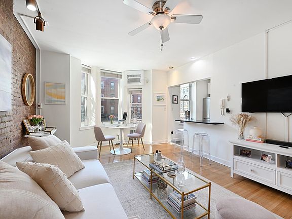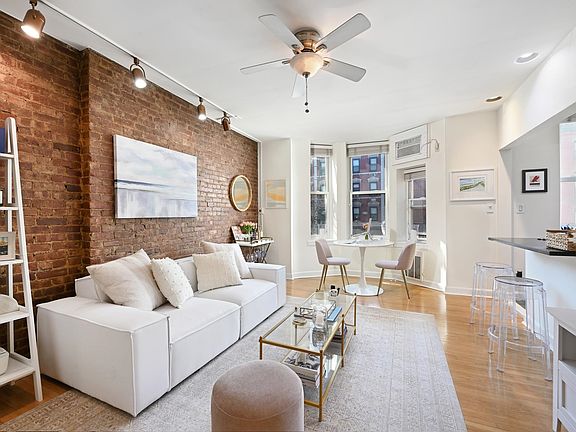 Enjoy uptown living in this comfortable, one bedroom one bath with a generous living/dining area. Enjoy the oversized primary bedroom with plenty of closet space. The residence offers hardwood flooring, brick accented walls and high ceilings that gives an airy spacious feel for living and entertaining. The newer kitchen has a clean-lined modern look with white cabinets, black granite countertops, a breakfast bar to enjoy morning coffee, and stainless appliances that opens into the cozy living room. This Elevator building has storage and a laundry area located in the lower level of the building. A convenient uptown Hoboken location provides easy access for transportation to and from NYC via the Ferry at 14th Street, and the Bus via the NJ Transit bus stop located at 13th and Washington Streets. You will truly enjoy this amazing proximity to restaurants, shopping, parks, seasonal farmers markets and the waterfront, all within this neighborhood.