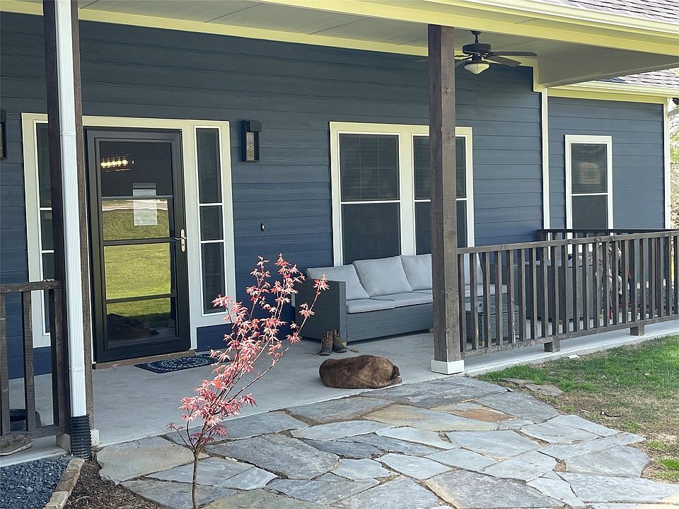Looking for a Rural home with NO CITY TAXES or HOA? You have found it. Barely lived in 3 bedroom with separate office. Open floorplan. Upstairs you will find a complete theatre room, with bar, wine cooler and highly appointed wood accents. Split bedrooms. Under counter lighting in kitchen along with a dining island. Primary bath offers a jetted tub and body spray in shower. If you need to give Fido a bath, this home has a separate dog bathing area. Sit on the covered porch and watch the sunset or rise. Room outside for a garden, pool, tennis court or barn. Let your imagination run. Detached carport and metal workshop with concrete flooring. Tornado season is here and this home has you covered with a built in storm shelter in the garage. It doesn't take space away from parking your car. Extra storage in garage. There is a survey available. Seller will leave the Refrigerator, Washer, Dryer, Theatre TV and furniture with full price offer. GREAT Opportunity awaits.