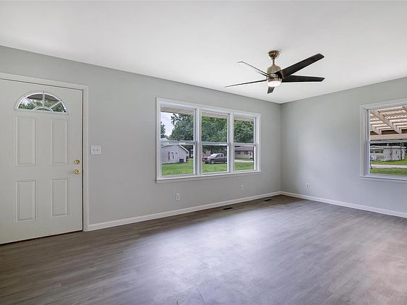 Located in the heart of Bowling Green on a large corner lot, this ranch home is ready to be made your forever home! Stepping up to the home, note the newly landscaped porch area and be greeted on entry by an open and well-lit floor plan. The interior welcomes you with a large living area, new vinyl plank flooring and lighting, and freshly painted gray walls. The caddy-corner kitchen features some included appliances such as an electric stove/oven, stainless steel dishwasher, and stainless steel oven hood, as well as a newer washer and dryer. The rest of the main level includes two spacious bedrooms and a remodeled full bath with a shower/tub combo. Lastly, the kitchen opens up to the side-entry with carport access and a large level yard, perfect for barbeques or activities with your friends and family. For an amazing price, this single-family home is a dream come true!
