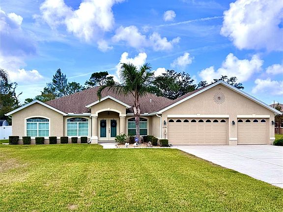 Under contract-accepting backup offers. Welcome to this beautifully maintained, CUSTOM-crafted 4-bedroom, 3-bath home with an ADDITIONAL private office and a sparkling SALTWATER pool.** Built in 2016 and set on a generous half-acre lot within a HIGHLY RATED school district, this residence offers the perfect blend of timeless elegance and modern comfort. Step inside and you’ll immediately feel the warmth of the open layout, enhanced by cathedral ceilings and abundant natural light. The chef-inspired kitchen serves as the heart of the home, featuring quartz countertops, an oversized island with its own sink, a second sink at the main counter, and a brand-new refrigerator—an ideal update for everyday convenience. This home includes a range of thoughtful enhancements, such as a dedicated central A/C unit for the 3-car garage, door alarms and window locks for added pool safety, custom blinds on all windows, pull-down attic stairs, and a storage shed for additional space. Updates include a newer water heater (2022) and a replaced pool pump (2021), reflecting the care and attention invested in this exceptional property. As you move outdoors, the home continues to impress. Enjoy the fully fenced backyard, the tranquil saltwater pool complete with an outdoor shower, and convenient hose bibs throughout the pool area. The expansive driveway offers parking for up to 6 additional vehicles, perfectly complementing the spacious 3-car garage. A dedicated irrigation well powers the 9-zone sprinkler system, keeping the landscaping lush and vibrant year-round—while maintaining the convenience of city water and septic for daily living. Minutes away from everything you need, including Veterans Memorial Park with an outdoor gym featuring a new Fitness Court and exercise stations along a scenic walking trail. It even includes a free Fitness Court app for digital guidance. Altogether, this remarkable property offers a welcoming atmosphere where elegance, comfort, and thoughtful upgrades come together to create a truly exceptional place to call home.