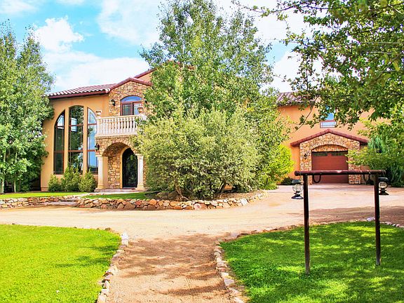 This absolutely stunning 6,208 total sq. ft. of living space with a 5,324 sq. ft. Tuscan style home with separate 1 bedroom, 1 bath, 884 sq. ft. guest cottage is nestled on 39 gorgeous, privately gated acres with facilities for horses, to include corrals and a 6 stall, 2,700 sq. ft. barn with paddocks and turnouts. Main home with 2 living rooms, 4 bedrooms and 5.5 baths, features an intricate stone archway, creating a bold statement upon entry, leading to open floorplan with soaring, vaulted and high-beamed ceilings to compliment the regal stone fireplace with floor to ceiling hearth. Commercial grade stainless steel appliances are a masterful detail in the gourmet kitchen with sit-up bar, island. A true retreat, the master bedroom offers tranquil serenity by the cozy fireplace, just steps away from the spa-like feel of the master bath with rich wood double vanities and large soaking tub. This ranch is perfect for equestrians and a must-see for those seeking to experience moonlit star-gazing among the sprawling country landscape of which tranquil serenity awaits!