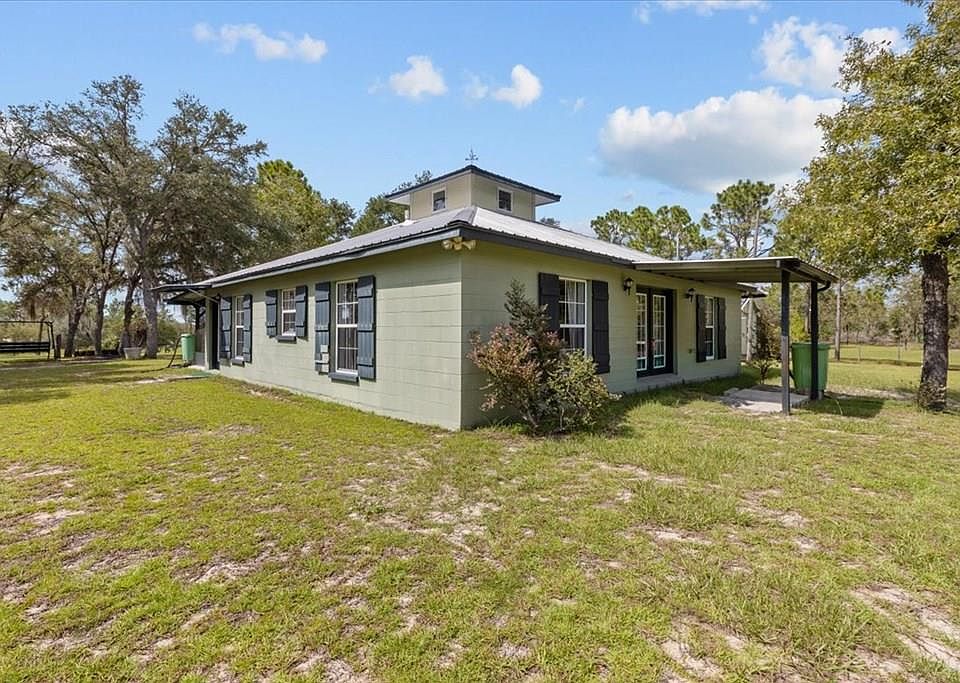 Wonderful 2 bedroom/1 bath custom home located on 9.18 acres in gorgeous Archer Florida. This property is a dream, beautiful rolling hills , open pasture , completely fenced and cross fenced perfect for the horses or farm animals. As you drive up to the property you see the cozy home sitting perfectly , a nice drive and gorgeous view across the pasture. As you enter the home you will fall in love with its uniqueness and charm . Original parquet flooring throughout in excellent condition , a nice foyer opening up the bright open floor plan with the open kitchen and open living room and exit doors onto the back screened porch. Bedrooms on spacious and share a bathroom with a combo tub/shower. Laundry room offers extra space for storage and an exit door as well. In the center of the home you get to enjoy natural light with the custom ceiling detail. Outside you have wide open space to put your own personal touch on it! Cross Fencing around the home perfect for pets . A nice outbuilding that can be used as a workshop and the lean too to park the mower or tractor. The property is surrounded by Goethe State Park ensuring ultimate privacy and seclusion! This home is a MUST SEE , accepting ALL loans , call today for YOUR tour!