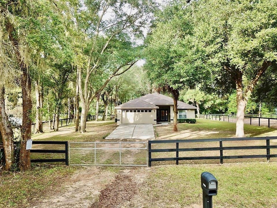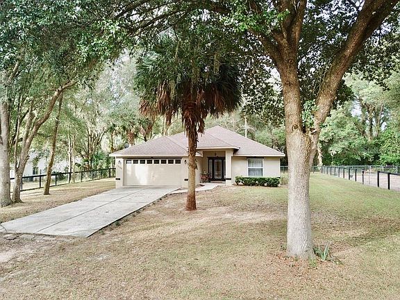 Room to roam with this 1.15 acre lot currently situated for horses which boast a paddock/pasture and plenty of shade. Home features 3 bedrooms 2 baths and an attached 2 car garage. Once inside you are greated with an open concept and soaring ceilings. Dedicated dining room with fireplace, Oversized eat-in-kitchen, kitchen with sold wood cabinets and seating at the bar, newer stainless steel appliances, split floor plan, generous sized master and master bath, indoor laundry, water softenr, and transferable termite bond are just some of the perks! See all that this property has to offer before it's gone!