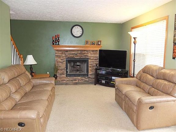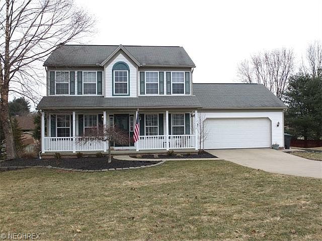 Easy living in this 3 bedroom, 2.5 bath colonial in Hartville! Inviting 2 story foyer. Great room with gas fireplace is open to the kitchen with breakfast bar and dinette. Formal dining room and formal living room or first floor office. Master suite has 2 closets including a spacious walk in closet and private full bath with double sinks, soaking tub and separate shower. 2 additional bedrooms and 2nd full bath complete the 2nd level. Finished lower level offers recreation room and office/play room. Bonus room too that could be used as a hobby room, play room or bedroom! Convenient 1st floor laundry room, freshly painted interior, new carpet throughout and more! Deck overlooks large, fenced in backyard with storage shed. Come see all this home has to offer!