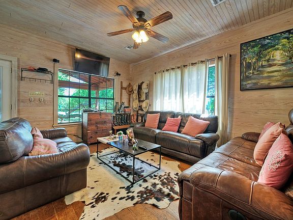 The ranch has two charming cabins that have been beautifully remodeled, ensuring ample space for family and friends. Imagine sitting on the back porch, surrounded by the majestic canopy of live oak trees, while overlooking a 1.5 acre pond with an island in the middle. This recreational haven is perfect for both hunting and fishing enthusiasts, providing a sanctuary to unwind and connect with nature.