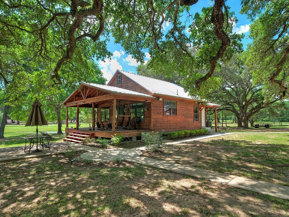 Charming cabinsSplit rail fencingPerimeter and cross fencingMeandering mile-long schweiner creekCustom laser-cut driveway gateTranquil pondMagnificent live oaks