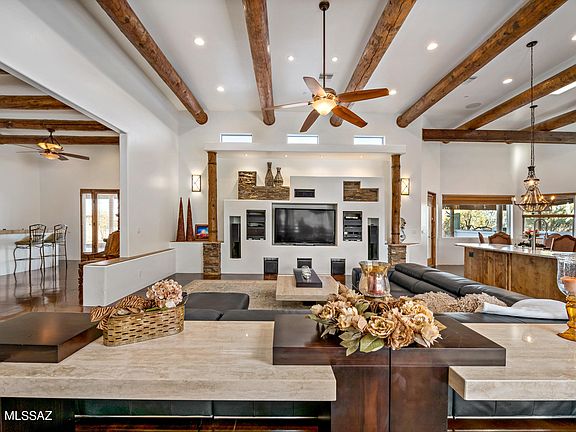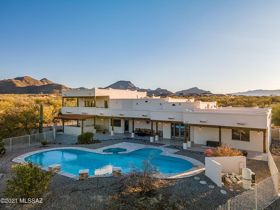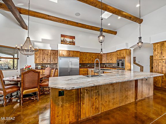 * This gorgeous estate is situated on 5 acres in Dove Mountain and boasts amazing 360 degree views! Chef's kitchen with large island, dual ovens, and gas range that opens to great room.Exposed beams throughout the home give an elegant southwest flare. Resort style outdoor living with an inviting heated pool and spa and covered built-in BBQ/outdoor kitchen area. Privatemaster suite is on its own wing with a jetted tub, walk-in dual head shower, steam shower, dual vanity, large closets and private balcony. Large guest rooms with ensuite baths. An oversized 4 car garage has plenty of room for carsand toys. Peaceful and quiet setting yet close to many amenities. Horses allowed if desired. Ritz-Carlton Resort, The Gallery Golf Club, parks, Tortolita Preserve, new school, shopping