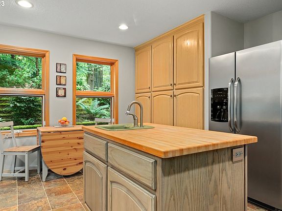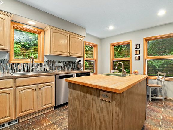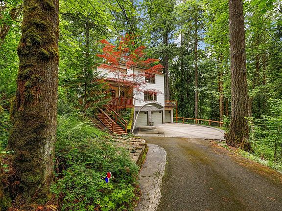 Meticulously maintained home in a serene wooded paradise still near to everything! 2 acres includes private nature trail, Wahoo Creek, and gorgeous low maintenance yard/woods which provides almost complete privacy year round. Beautiful Ash flooring in living and dining rooms, woodstove. Updated kitchen with Ash cabinetry, concrete counters, double ovens, maple butcher block island. Primary bedroom w/walk-in closet and shower, jetted tub. Garage w/220v wired shop and tool/storage shed which could be used as a 3rd garage bay offer approximately 1250 square feet of excellent storage/parking/hobby space. Enjoy nature views from approximately 300 square feet of covered porch and 500 square feet of exterior deck. Definitely a must see! [Home Energy Score = 6. HES Report at https://rpt.greenbuildingregistry.com/hes/OR10200458]