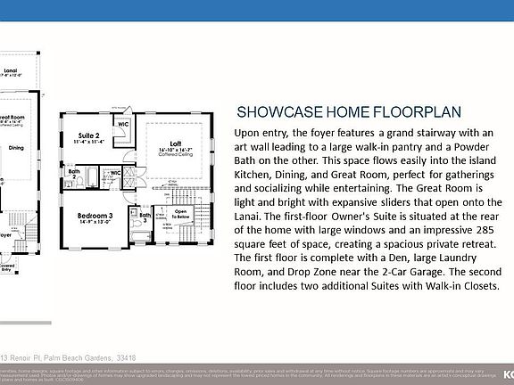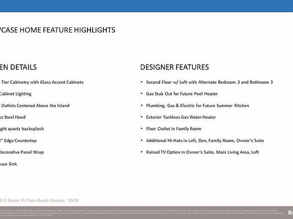 ** UNDER CONSTRUCTION** stunning two-story home features 3 Bedroom, Den, Loft, 3 Full and 1 Half Bath, and a 2-Car Garage. The Island Kitchen is designed with White cabinets with crown moulding, Quartz countertops and backsplash, a 36'' cooktop monogram, and 36'' built-in Oven. The open floor plan is perfect for gathering and socializing while entertaining. The expansive sliding doors that open onto the lanai fill the Great Room with natural light. The Owner's Suite has tray ceilings and large windows, and the Owner's Bath offers a double vanity, a frameless walk-in shower with a bench seat, and a walk-in closet. The second floor boasts two additional Suites and a spacious Loft. The lanai includes plumbing, gas, and electric for a future summer kitchen.