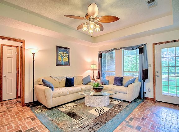 This brick home sits on 1.6 acres which runs to the center of Mill Creek. Stunning brick floors throughout except in the bedrooms. Tray ceilings in living room and master bedroom. Huge master bath with a split floor plan.