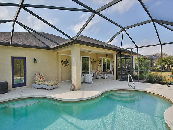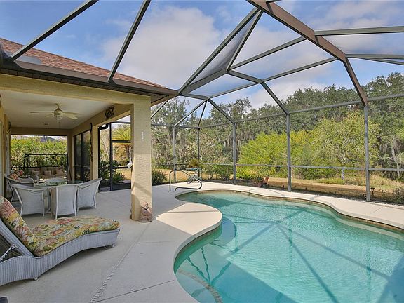 Welcome home to GAMBLE CREEK ESTATES - a highly sought-after, upscale community. 3 Bedrooms plus den/office and a great room plan with vaulted ceilings. The kitchen with granite countertops is the center of the home which opens to the living area and adjoining dining room. Enjoy the solar heated pool and spacious lanai which overlooks a quiet and peaceful wooded preserve. The owner has recently installed hurricane rated windows and sliders for added protection and peace of mind. Central Vac system, Wide Plank Hickory Flooring through most of the home, plus tile. No carpet. Cherry Cabinets in Kitchen and baths. Newer Washer & Dryer. Convenient to shopping, dining, Lakewood Ranch and I-75.