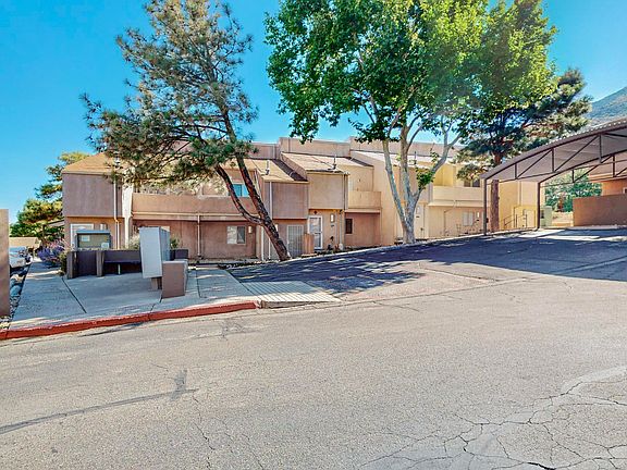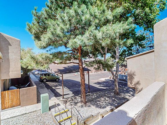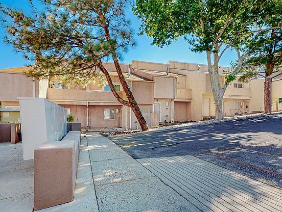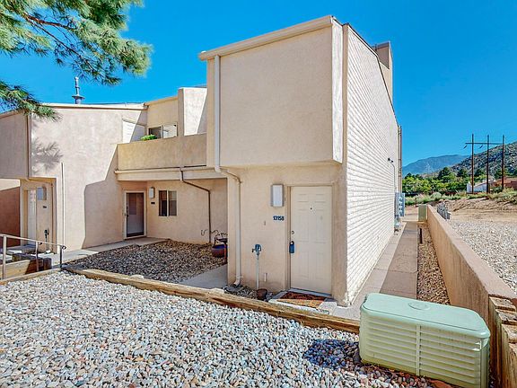 Simply lovely secluded end unit condo offers ultimate privacy and convenience. Unwind on one of the two outdoor patios, perfect for soaking up the cool breeze and taking in the breathtaking unobstructed views of the Sandia Mountains. The open-concept living area features vaulted ceilings, vinyl plank flooring and functional floorplan, making it an ideal space for entertaining. With fresh paint and clean lines, this turnkey condo is a low-maintenance oasis waiting to be yours! Recently replaced water heater located in ample storage space located off front patio. Furniture may be available with the right offer.