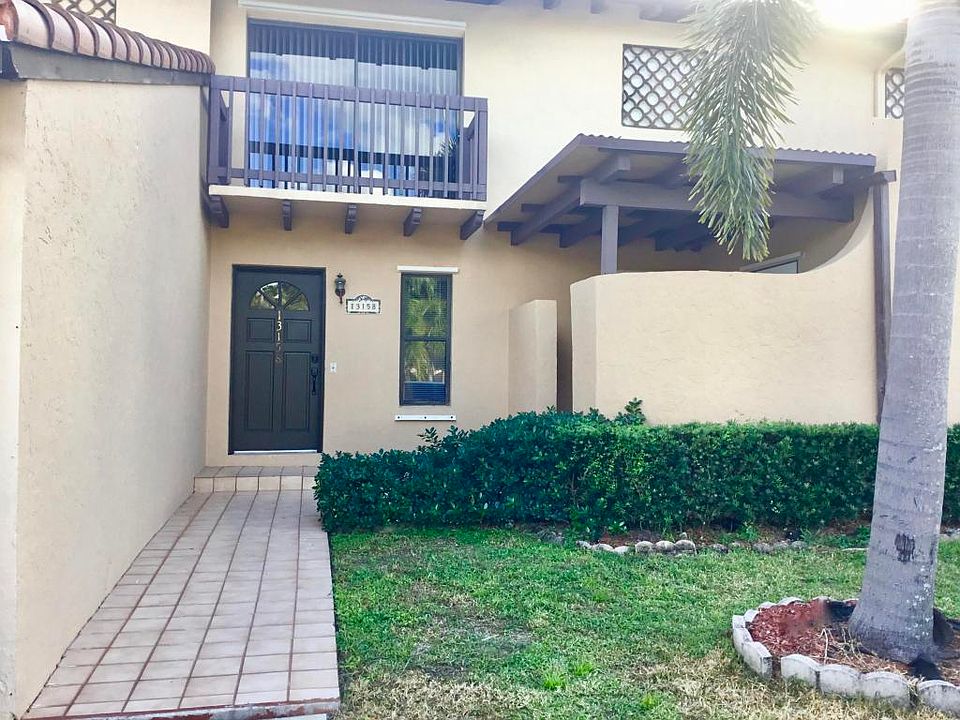 Absolutely charming Via Veneto Villa located in the heart of Wellington and in an excellent school district. Recently renovated with new A/C, Stainless Steal appliances, granite countertops in the kitchen, washer/dryer and ceramic tile throughout the first floor and staircase. Each of the 3 bedrooms boasts ensuite bathrooms, private balcony and walk-in closets. The master suite has the largest of the 3 balconies with a great view of the canal and mature palm tress. There is also a screened in patio off the living room where your guests can enjoy the view. Don't get stuck up north in the cold. Come make sunny south Florida home all year!