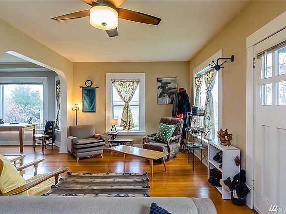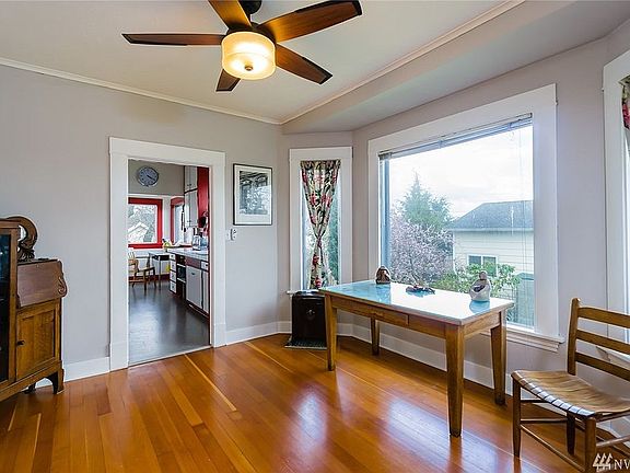 Desirable Old Town location! Exceptional Craftsman style home features architectural details & built-ins. Hardwood floors, large living room w/wood fireplace & new high end windows and exterior paint grace this period home. Stunning views of Mt. Baker from kitchen windows. Newer electrical & plumbing. Basement Newly remodeled with walk out French doors, living room and kitchen, 2 bedrooms and spacious bathroom. Low maintenance yard w/fruit trees, rock wall and staircase, flagstone patio, & garden space. Close to downtown, library, parks and local theater.