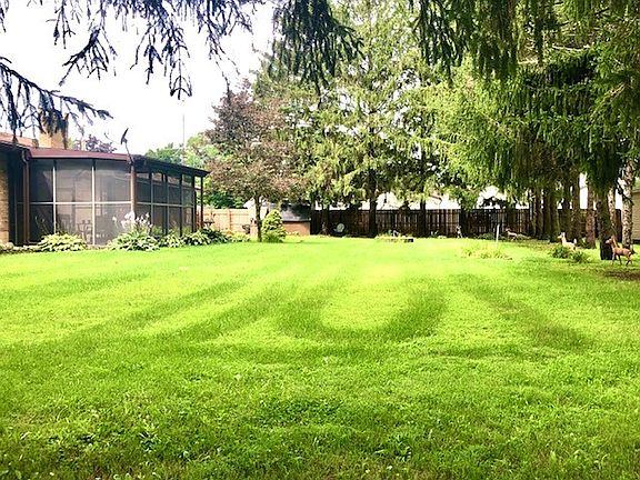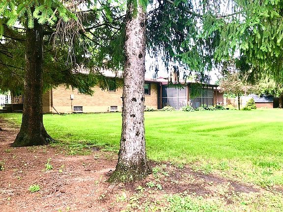 Sprawling brick ranch situated on 2 lots (.38/Acre) with a park like setting in town. Roomy interior features formal living room and family room on the main floor. Formal dining area and sliding doors to the large screened room. 6-panel doors throughout. Oak kitchen offers all the appliances, breakfast bar and pantry. Family room with woodburning fireplace and 1/2 bath. The basement has a possible 3rd bedroom, wet bar and 2 storage rooms with extra shower/toilet. 34x21 attached garage with pull down attic. Privacy surrounds with many trees and partially fenced backyard. 10x13 deck, firepit and storage shed. Roof (2012). 2 Furnaces, 2 Central Air Units and 2 Water Heaters.
