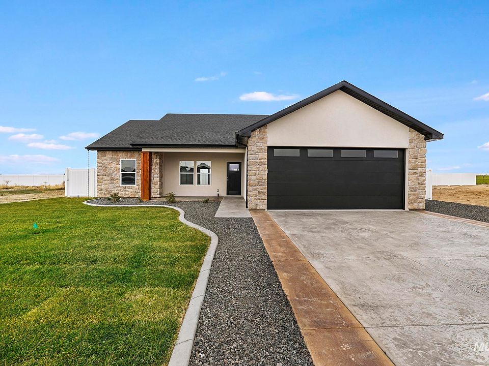 Located in Becker Estates, this 3-bedroom, 2-bath, 1,445 sq ft home showcases Ramstone Construction’s signature quality and attention to detail. Elevated ceilings in the living room and primary suite create a spacious feel, while the kitchen features a stylish tile backsplash and freestanding gas stove/range. The primary suite includes a walk-in shower for comfort and convenience. Exterior highlights include cedar-wrapped beams, a stamped and stained concrete driveway, a front rain gutter, and gravel along one side of the home for RV parking. With a gas water heater, furnace, and thoughtful finishes throughout, this home is designed for both function and style. Check out this beautiful new build today!
