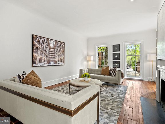Elegance and West Village charm with rare 2-3 car parking, a side entrance private courtyard, patio, and deep garden! Experience the epitome of Georgetown living in this sun-filled, semi-detached quintessential Georgetown residence with magical yet private Georgetown views. Boasting 4 Bedrooms, 3.5 Bathrooms and over 3,000 square feet of living space across 3 levels, this home exudes timeless elegance and modern luxury. Step inside to discover the high ceilings, original pine wood floors and impeccably proportioned rooms that bathe in natural light. The main level welcomes you with an elegant living room features large windows, a wood-burning fireplace and exquisite built-in bookshelves. Adjacent is a charming Dining Room with a second fireplace and built-in spacious custom China cabinet, perfect for intimate gatherings. The gourmet eat-in Kitchen is a modern chef’s dream, equipped with top-of-the-line appliances, a breakfast nook with extra storage and an additional gas fireplace. Upstairs, the Primary Suite awaits with its private southern style balcony, en-suite Bathroom with separate shower and bathing tub, triple window exposures and custom Hunter Douglas electric window treatments, in addition to the remarkable floor to ceiling custom wood closets. Two additional Bedrooms with custom-made, floor-to-ceiling adjustable closets and a Bathroom complete the upper level. The lower level offers versatility with an au pair or guest suite, spacious recreation room, a convenient Kitchenette and Laundry Room complete with a central vac system which adds to the convenience of it all. Outside, escape to the serene private garden, extending to a very rare oversized 2 car Garage with an abundance of storage in addition to two EV charging outlets and one Tesla EV Charger. A rare gem. The recently built Garage conceived with a dual purpose, features two sets of beautiful French doors that open to an updated flagstone balcony overlooking the large garden, creating a picturesque setting for outdoor entertaining. This meticulously upgraded home seamlessly blends historic charm with modern amenities for the ultimate Georgetown living.