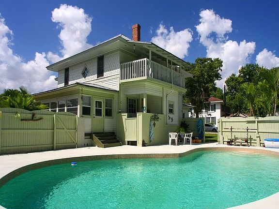 Treat yourself to a piece of Florida history. This West Palmetto gem is a rare find and has been in the same family for over 4 decades. Two-story Colonial features 4 bedrooms + a den, separate garage and workshop, in ground pool, 40 ft wrap-around porch , and sits on a double corner lot with lots of flora and fauna. This home has many updates, while keeping with what was once the Florida lifestyle: Original hardwood floors on first level have been refurbished and are complimented by ornate woodwork and moldings; bay window in Dining Rm; Sitting Rm adjacent to Master Bdrm & 2nd Bdrm; fireplaces in 3rd Bdrm & Family Rm; Balcony off 4th Bdrm. Pride of ownership runs through and through. Located within the Palmetto Historic District (National Register of Historical Places), just blocks to the marina and public boat ramp, walking distance to downtown and historic buildings.