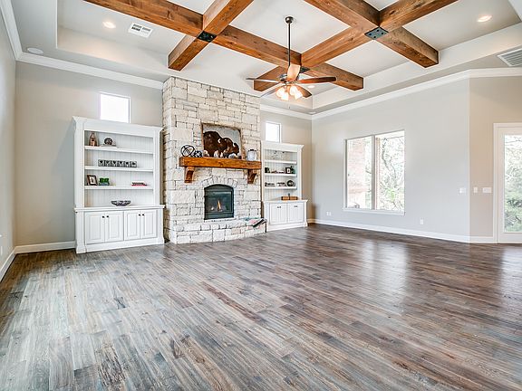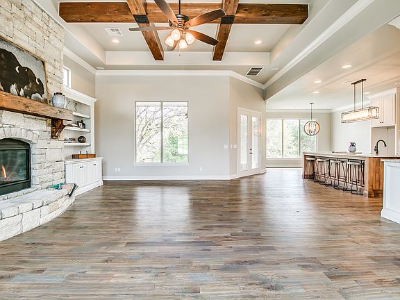 This Parade Home could be yours!! Tranquility awaits you at this Stunning 2 ACRE Estate in East Edmond's Beaupre!!! Grand Entry (Wait until you see the Basket Weave Design in the Hardwood Floors!!) Impressive Great Room with a 13' Beamed, Coffered Ceiling, and a Massive Stone Fireplace, flanked by Built-ins!! Open Kitchen features an Expansive Island, Farm Sink, Bosch appliances w/ Double Ovens, and 36" Gas cooktop! The Master Bedroom and Private Study w/ it's own Planning Center are downstairs! Mudroom/Utility with direct access to Master suite! Hand-cut Stonework! Wide Plank Hardwood floors! Slab granite counters! Iron stair railings! Three spacious bedrooms are up, each with a full bath! Generous game room space perfect for just about any activity!! An Outdoor Living with extended patio and a wood burning fireplace to relax and enjoy the view!!