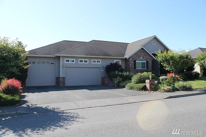 This one-level custom residence on Eaglemont's 13th fairway is an exceptional opportunity! View from tee to green with Cultus Mtn and Mt Baker as your backdrop. 12' & 9' ceilings, gorgeous custom woodwork. Gas fireplace in the soaring great room. Master suite with W-I closet. Custom kitchen with B-I Sub-Zero refer and high end appliances. Attached 2 car garage with workshop plus a B-I 40' RV bay! nothing compares to this home. Loose rugs, plate rack in nook, patio furniture do not convey.