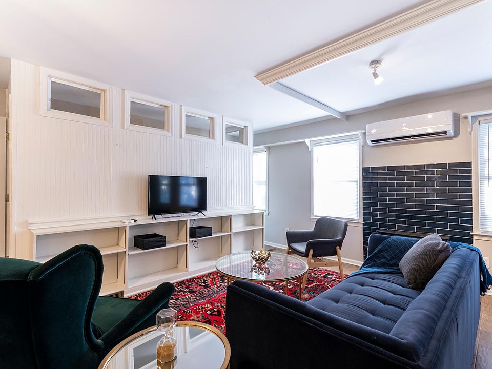 Available immediately! Rent the recently renovated and beautifully furnished second floor apartment of this home in the Highlands on a quiet block close to the hustle and bustle of Bardstown Road and all it has to offer. You'll be within walking distance of a grocery store, a library, a movie theater, a book store, a bus stop, and dozens of restaurants, bars and coffee shops. You will have your own parking spot in the garage. Street parking is also plentiful. Huge bedroom with at least one full sized bed and room for more beds if necessary. Two walk-in closets. Washer/dryer, range, dishwasher, HDTV, and air conditioning units in bedroom and living room, furniture, standalone gas fireplace--all of these were purchased in 2019. Kitchen essentials. Two built-in desks. Private staircase. accessible from backdoor. Tenant pays for utilities.