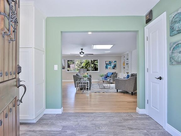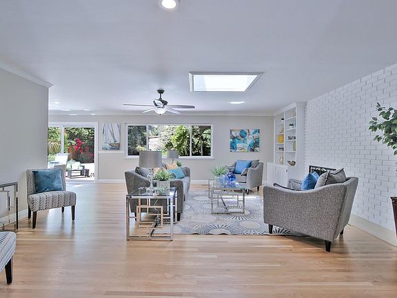 Stunning contemporary home expanded and remodeled with taste & elegance throughout. 2184 square feet of living space and an additional detached approx 670 SQFT structure. Main house has 4 beds 2.5 baths and a separate bedroom/bath excellent for in-law quarters, au-pair or Air B&B. Detached structure ideal for office, gym, hobby room or future conversion to a self contained cottage/pool house. Many upgrades include new custom paint inside/out, gorgeous hardwood floors, great room w/spacious LR and DR. Remodeled gourmet kit w/custom cabinets, granite counter tops,high-end Stainless Steel appliances including LG gas-range & double electric oven & LG French door refrigerator. Double pane windows &sliding doors. Crown molding, central heat & A/C,remodeled baths, 2 fireplaces, ceiling fans and skylights. Sparkling renovated pool w/new concrete surface, solar heat & beautiful waterfall feature. Tankless water heater, landscaped front & private rear yard w/many fruit trees & vegetable garden.