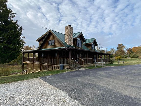 Nestled just north of the Ohio River this GORGEOUS custom-built cabin provides quiet country living and incredible views! The Heritage log cabin features 3 bedrooms, 3.5 baths, a large loft and a partially finished walk out basement. As you enter, you are greeted with vaulted ceilings and a stone fireplace giving you the feeling of just being ''Home''. The kitchen is nicely laid out and is spacious with ample storage room. The stocked pond is a short walk away and will provide the family with hours of fishing enjoyment. This property would also make a terrific hobby farm as there are multiple small, fenced pastures and a large metal barn giving you ample room to store implements. Deer sign is abundant throughout with heavily traveled trails. Properties like this don't come around often!