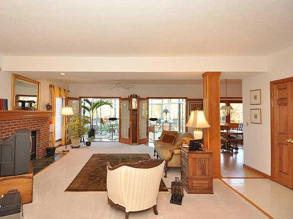 Luxury lkefrnt living! Vacation year round! Granite & SS appl just installed! Wded lot, dramatic open flr pln! Kit w/dbl ovns, cntr isle! GR w/wdbrn FP! Frml area! Mstr retreat w/soaring clgs, whrpl,& ep shower! 19x15 sunrm w/panoramic views! Lndry rm w/tons of cab & lockers! Fnshd walk-out LL feats FR w/frplc, rec/play area, wet bar, surr snd, full BA & wrkshp (could be finshd or 5th BR, exercise, etc). Huge patio for entrtmnt! Irrig sys. Prof lndscp. Boat dock w/canopy!