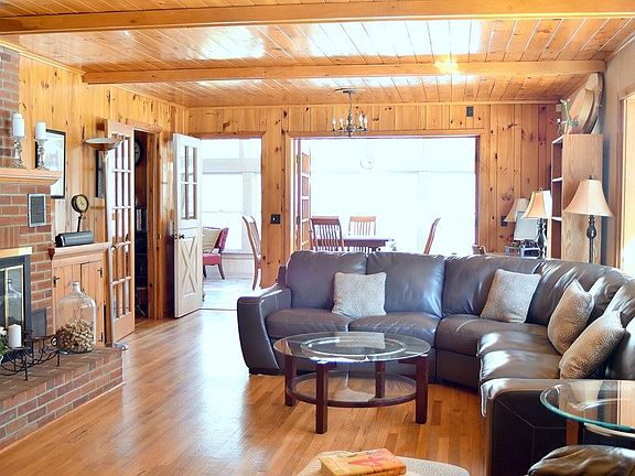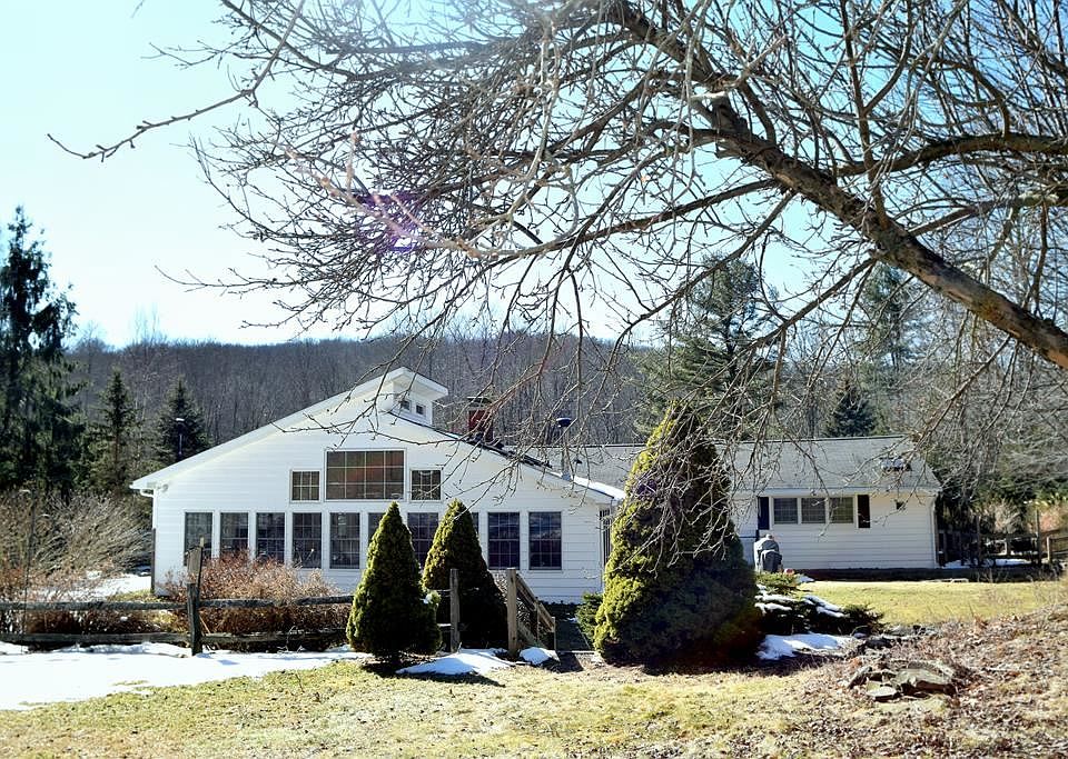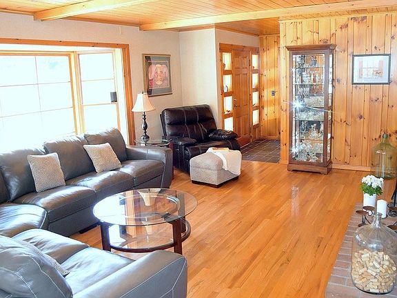 NEW PRICE!! Cozy & Chic custom-built ranch w/6a of park-like landscapes.Offers convenience & serenity.Main flr:living rm w/dining area,french doors open space to 4-season rm w/walls of windows,overlooks gentle landscapes,galley style kitchen w/breakfast area,full bath,3 lrge bedrms,master bedrm w/renovated on-suite,Lwr lvl finished w/lrg family rm,full kitchenette,lrg laundry rm,renovated full bath,addit. rm to use as you wish,root cellar,studio loft over 2-car garage,2 pole barns,fenced yard,cell service,high speed internet,cable,natural gas,solar panels,whole house generator.