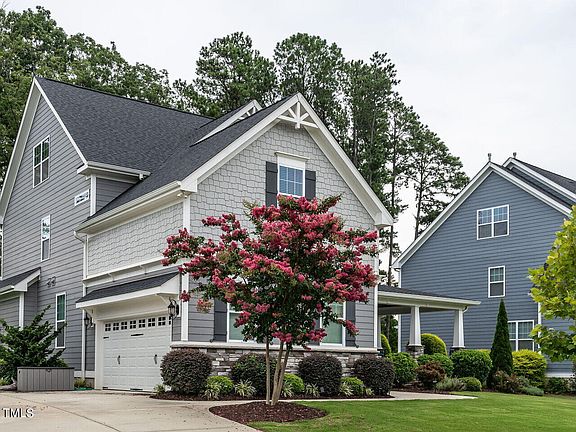 Welcome home! This gorgeous 3 story home greets you with an inviting wrap-around front porch. The first floor is an open flowing and inviting plan with a formal dining room, full guest suite w/ in-suite bath, & additional 1/2 bath. The kitchen, breakfast room, and family room are across the back of the home with tons of windows overlooking the private back yard. The back of the home is flanked to the left with a fireplace and built-in cabinets and to the right a beautiful gourmet kitchen. Off the breakfast room is a HUGE screened porch with a beautiful stained beadboard ceiling. The grilling deck is just off the screen porch and overlooking a beautiful back yard with mature oak trees. The second floor welcomes you with a beautiful hardwood landing & starts with a gracious owners suite. Double doors open into the beautiful space. The in-suite bath features a 5' tile shower with infinity glass doors, soaker tub, dual vanities with granite tops and ample space. The owners suite also features dual walk-in closets! The second and third floors are very versatile. It could be six bedrooms and a bonus, dual home offices, a bonus room on each floor, the possibilities are endless. The second floor hall bath features double vanities a door into bedroom 5, and a door to separate the vanities from the tub/shower and toilet. The second floor also features the laundry room. Washer and dryer are flanked by 42'' upper cabinets and the room also features a linen closet. The 3rd floor features a GIANT bonus room-the windows have a great view of Fairview Park, a full bath, and a large bedroom with dual closets. This home also features an oversized side-load 2 car garage that enters via the mudroom into the foyer. This home is well appointed and in a great location. An Apex address in Cary City limits. 1316 Commons Ford is right off Ten-Ten Road and almost equal distance to the new 540 access points at Bells Lake or Holly Springs Road.