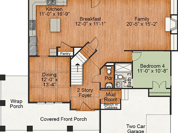 A classic design, The Edenton is perfect for entertaining and everyday living! The first floor includes a welcoming 2-story foyer, an open family room, a breakfast nook, and a gourmet kitchen. In the kitchen, you'll find stainless steel appliances, granite countertops, tile back-splash, and an eat-at island! The family room features a side fireplace with surrounding built-ins and the breakfast nook includes access to the rear screened porch and grill deck. The first floor also has a study/extra bedroom with a full bath, a formal dining room, a mudroom with bench and cubbies, a powder room, a 2-car, side-load garage, and a covered, wrap front porch. The owner's suite is located on the second floor and includes a separate bath and shower as well as two walk-in closets. Upstairs you'll also find 2 additional bedrooms, a rec room/bedroom, a laundry room with a linen closet, and stairs up to the finished third floor which includes a rec room, a bedroom, and a full bath.
