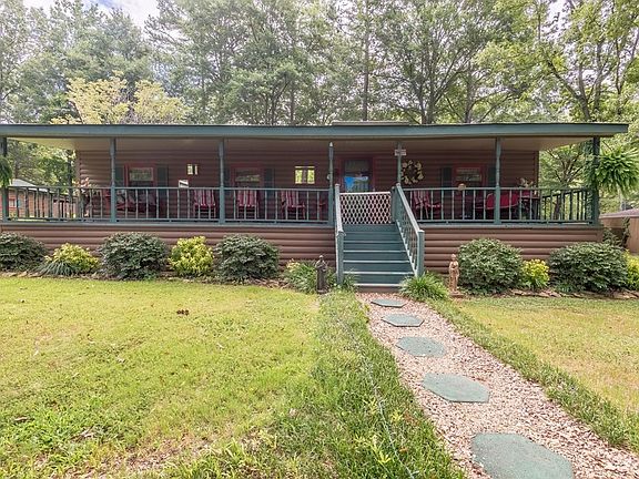 Beautiful Log siding home across from the water with skylights and beams throughout the house along with a large sun room. The home has a detached double garage with a storage room in the back, a play house, small workshop, and metal detached carport. All appliances remain with the home and some furnishings.