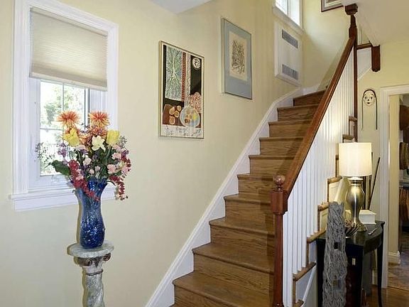 Fabulous home on beautiful street offers spacious living areas & charm all on its own! Inviting entry FOY introduces sleek oak hrdwds that extend throughout most of the home. Formal LR hosts WB FP&opens to DR, both w/accent moldings. Eat-in KIT w/SS appls. Spacious BRs&updated full BA w/porcelain-tile flrs&soak tub! LL w/powder rm. New shades, 1-car detached garage & charming fenced-in yard!