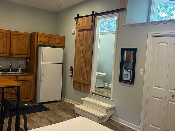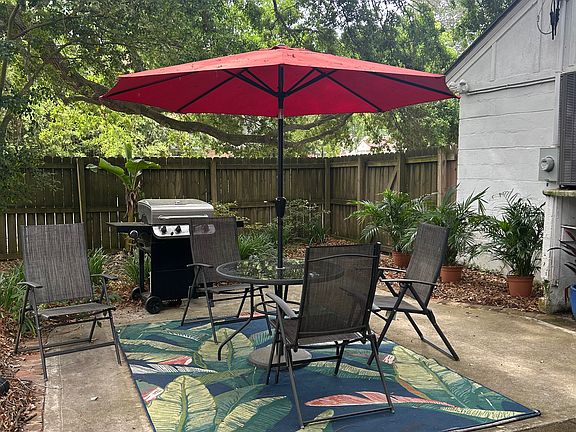 This property is a semi-furnished studio apartment located behind the main house in a lush courtyard setting. The studio apartment has a full kitchen and bathroom, large closet, and ample natural light. All utilities and some furniture (bed, dining table, shelving units) included. Off-street parking and fenced yard with majestic oak tree and landscaped patio. Laundry room is shared with the main house, which is an executive (30+ day) rental. Standard one-year lease. All utilities (power, water/trash, wifi) included in rent. No dogs.