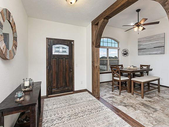 Do you long for peace, tranquility and maybe some horses or cattle? Do you also want a beautiful home that's not too big and not too small? Look no further ! This is truly an immaculate home and one that will be a joy to show and see!!! Very well maintained home with a floor plan that has a natural flow. Thought was definitely put into this one. The laundry room is directly off of the garage (washer and dryer are negotiable) . Split bedroom plan with the master having its own side of the house. The large walk in shower is a definite bonus . The kitchen is lovely and has a large pantry . All appliances stay!!! Beautiful finishes and a neutral palette. A few extras include, tinted windows on the front of the home, whole home sound system, an audio closet so there are no exposed wires, custom shades and a home security system. Don't worry about not having a basement for tornadoes, there is a tornado shelter in the master bedroom closet. All of the acreage is already fenced. The backyard has an area off the deck that is chain link fence to keep you dogs safe ,maybe put a garden in or just simply for separation from the rest of the acreage. Mostly open land but there are a good amount of trees too. The owner sees deer frequently! There is also a two horse stable already on the property.
