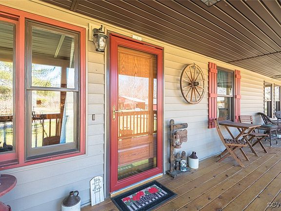 Ready for horses! This exceptional 34-acre property is designed for equestrian living, featuring an 11-stall aisle barn with inside and outside wash bays, a feed room, and a tack office. The land is a mix of cleared pastures and timbered acreage, already divided into paddocks and open grazing areas, with new fencing surrounding the entire property. A large open riding arena provides ample space for training and riding. With road frontage, horse loading and hay deliveries are effortless. Nestled among mature trees for privacy, the home exudes a charming mountain retreat vibe with one-level living, a full-length country porch, and a screened-in porch for enjoying the peaceful surroundings. The home was renovated just three years ago, featuring a new roof, siding, fencing, flooring, windows, doors, and remodeled bathrooms. Inside, the eat-in kitchen is equipped with stainless steel appliances, while the home also offers a laundry room, living room, and family room. The primary bedroom features a private ensuite for added comfort. Outdoor spaces are further enhanced by a new back deck. Additional upgrades include all-new Leaf Lifter gutters, a newly installed gutter system, and an artesian well. Despite the peaceful setting, the property is just minutes from Food Lion, Tractor Supply, restaurants, and the county courthouse.