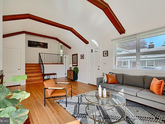 Step into this light-filled mid-century modern gem, where timeless design meets practical living. This 3-bedroom, 1-bath home is full of character, featuring warm light wood floors, tall ceilings with exposed wood beams, and a classic double-sided wood-burning fireplace that anchors the heart of the home. The main level includes a separate dining room—perfect for gatherings—and a bright, functional kitchen with clean white cabinetry and a simple, inviting aesthetic. One of the three bedrooms is located on the first floor and features stylish shiplap siding, making it an ideal space for a home office, guest room, or cozy retreat. Upstairs, you’ll find two generously sized bedrooms that offer serene views overlooking the lush backyard, filled with mature and native plantings and often visited by local wildlife. The finished lower level provides a comfortable family room, while the unfinished side offers plenty of storage. Fully owned solar panels mean long-term energy savings with no lease to assume—an added bonus for eco-conscious buyers. Enjoy the outdoors from the three-season side porch, and take advantage of the 2-car driveway for easy off-street parking. Don’t miss this rare opportunity to own a thoughtfully designed mid-century home that blends timeless style, modern comfort, and a beautiful connection to nature.