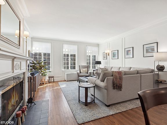 Welcome to this special home in a National Landmark building. Filled with light from three exposures, this home offers all the amenities of today's modern lifestyle while still retaining the charm of a 1920's beauty. From the thoughtful updates to the architectural details such as archways, crown and picture mouldings, and hardwood floors throughout there is much to love in this expansive space of approximately 2000 sq ft. The Parisian style great room accommodates both a separate living and dining area allowing all to enjoy the east facing windows, a working wood burning fireplace, and wall sconce lighting for ambiance. Highlighted by a custom window seat bench in front of west facing windows and French doors open to the kitchen, the formal dining room space is currently used as a family room, allowing the chef to remain part of the action while entertaining. The stylish kitchen features an expansive island for prep work or casual dining, abundant storage, quartz countertops, Sub Zero refrigerator, Thermador oven/range with vent hood, and a wine refrigerator. Recent kitchen improvements: pendant lights over the island, upgraded undercabinet and recessed lighting, new subway tile backsplash, lower cabinets outfitted with custom pullout shelves, and all cabinets painted. Finishing off the kitchen is a small desk area with a south view over the courtyard. The primary bedroom suite features recently upgraded custom organized closets plus an updated bathroom with new double vanity sink and hardware, light fixtures, and an in-cabinet plug in station for personal appliances. The second bedroom now used as a home office has extensive shelving ideal for the book lover or the collector in addition to newly built-in cabinetry in a former alcove. The third bedroom is ensuite. Across the hallway is the updated half bath with new vanity, toilet and light fixture. Here you will also find the in-unit laundry. Other creature comforts: ceiling fans added to all bedrooms; central air in the primary bedroom and two mini-split units in the foyer and family room to keep the rest of the home cool come summer; dimmable light fixtures, additional outlets in the living room and kitchen. Pets are welcome. Feel free to leave the car in your deeded garage as you take advantage of the convenient location, just a few blocks to downtown Evanston and the lakefront.