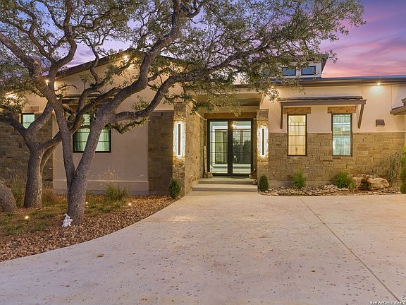 The Ultimate Hill Country Compound. Tucked away in the prestigious gated community of Monteola, this private estate combines resort-style amenities with the charm of Texas Hill Country living-just minutes from city conveniences. Resting on 5.22 acres the main home, completed in 2023, showcases 3 bedrooms and 3.5 baths with a striking open floor plan highlighted by 13-foot ceilings and walls of windows. Entertainment abounds with a dedicated theater, game and billiards room, and seamless flow into expansive outdoor living areas. A resort-style pool with cascading spa, vibrant landscaping, outdoor speakers, and a 16-foot covered patio create the perfect backdrop for gatherings large or small. For extended stays or multi-generational living, the 1,786 sq. ft. guest house offers comfort and privacy, while the 3,500 sq. ft. insulated shop provides endless flexibility. Every detail of this compound-from the custom pool design to the luxury finishes-was crafted to deliver the ultimate family retreat and entertainer's dream. Shop has septic hook up , water and power for motorhome. This property is on a private well. Kid tree house also has power.