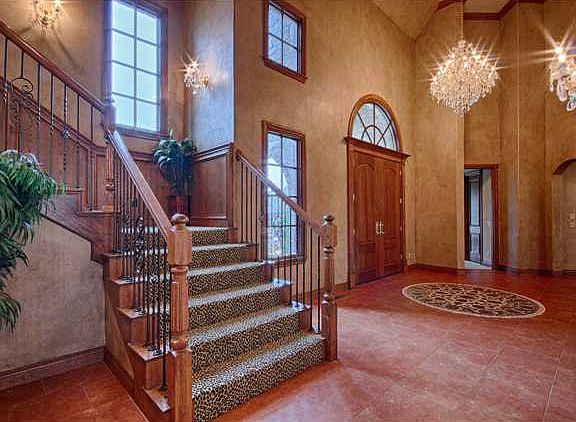 Excellent corner lot (almost 1/2 acre), tile and wood floors down, 2 bedrooms down. 3-4 beds up (master up and office up has full bath). Walk-out Safe Room, laundry chute, Copper detail over turret outside, HUGE covered patio! Backyard has plenty of room to add a large pool and outdoor feature, if needed. A formal area off the formal dining could also be used for the study. Lots of flexibility designed in this plan. Corporate or Long term renting option can be considered (as fully furnished house).