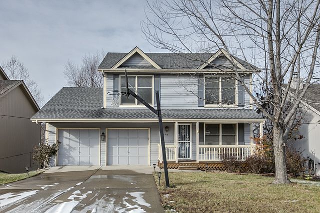 The search stops here! Watch the kids play from your covered porch or cozy up for movie night in your spacious Living Room just off the main entrance. Dinner parties will be a breeze with your Large Formal Dining Room open to Kitchen & Living Room for easy Entertaining. Ample counter & cabinet space in Kitchen & All Appliances Stay! Extra Large Bedrooms on 2nd Level with Walk in Closets. Cozy Master Suite with Private Martini Deck, Large Walk in Closet and large en-suite with Jacuzzi Tub, Skylights & Vaulted Ceilings. Expansive Lower Level with Fireplace and convenient half bath. Tons of additional storage space. Basement walks out to Patio & Large Deck for outside entertaining. Private fenced yard backs to trees! Roof is only 3 Years Old! Property has GOOGLE Fiber. Great location-mins from Downtown KC