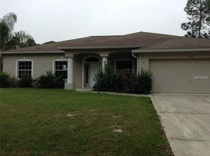 Want to design your own home but don't want to start from scratch? This home has a brand new front door to greet you. Once inside, you have a blank canvas. Home will need insulation, drywall and flooring. Kitchen and bath cabinets are in the garage ready to be reinstalled. Large home with over 2100 living sqaure feet built in 2006.Open, spacious. Screened in lanai ovelooks backyard with greenblet behind it. Home is situated in convenient neighborhood with shopping, golf and parks all nearby. This is a Fannie Mae Homepath property