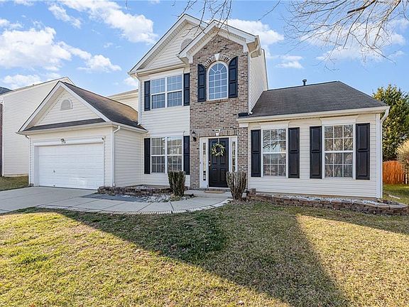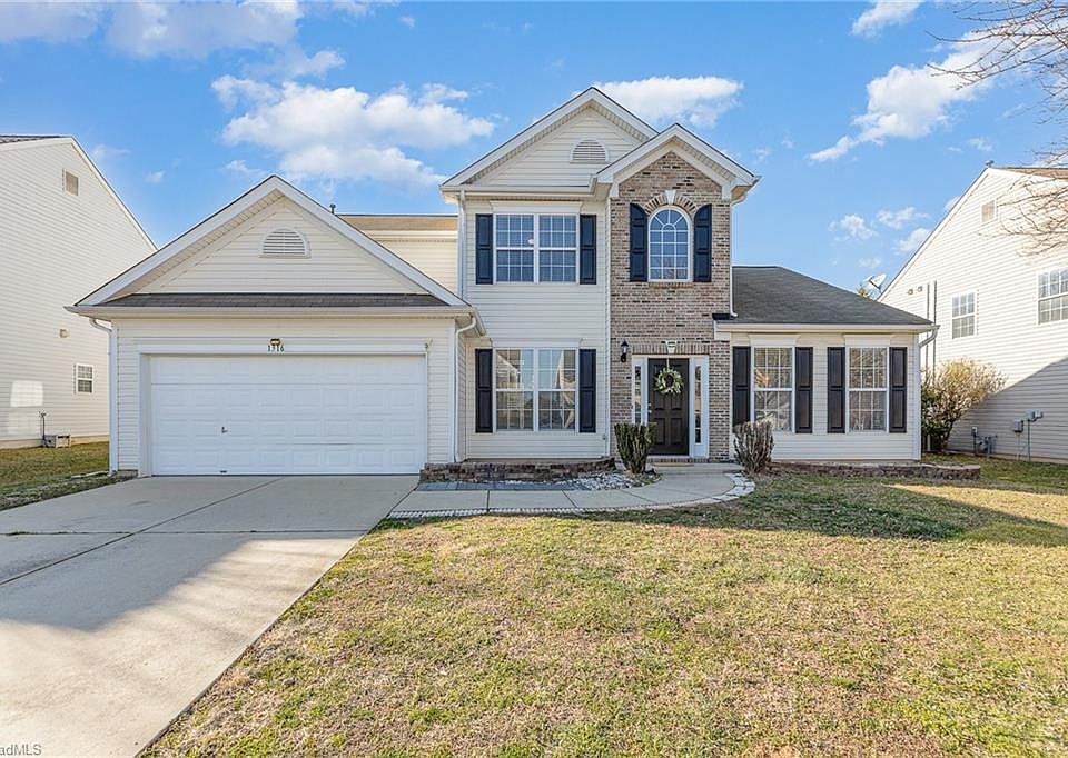 Charming, Move-In Ready home in Prime Location! Step into this light, bright home with an open concept floor plan. Fresh new paint and low-maintenance flooring throughout. The primary bedroom is on the main level and features an ensuite bathroom with a spa-like garden tub and a large walk-in closet. Three additional large bedrooms are on the second level. Spacious kitchen with brand-new range and microwave in 2025. Steps away, you will find a separate laundry room and a pantry. The living room features vaulted ceilings and cozy gas logs. The pristine garage has epoxy-coated flooring. Outside, the fenced backyard provides privacy and space to relax. The 7x9 storage building remains. Located in a friendly neighborhood with a scenic walking path and Little Free Library, this home is just minutes from the Palladium shopping center, dining, major highways and the Piedmont Triad Farmer’s Market. A perfect blend of comfort and convenience, don’t miss this one!