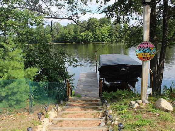 BOOM LAKE Condo unlike any other: no monthly fees and complete control/ownership of front /back yards. Located on a very level lot and boasts a first floor master suite, hardwood floors, gas fireplace, expansive views of Boom Lake & Estabrook Island, generous closet space throughout, open loft area w/ wet bar and upper deck, and first floor laundry. The owners completed the following upgrades: custom up down blinds in the living room, a 30x40 concrete patio area perfect for outdoor living and entertaining, permanent pier/stairs/retaining wall, 2023 new kitchen appliances, fenced in yard, 3 camper hookups for guests, and a just completed 40x40 ASPHALT PARKING AREA AND FULL DRIVEWAY (FROM RIVER ST TO GARAGE). All furniture indoor and out is included. No moving necessary! This is one of only two units in the entire condo association...a very rare find!