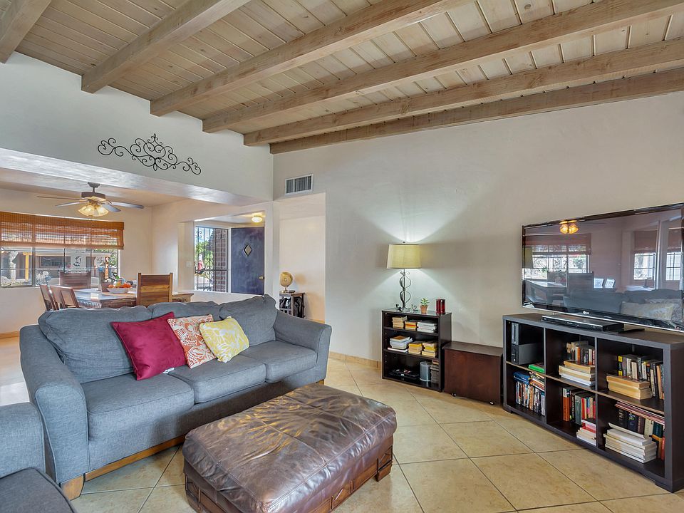 Stylish Mid-Century BURNT ADOBE home - located in the fabulous east side community of Terra Del Sol. Enjoy this open floor plan freshly updated east side gem conveniently located close to shopping, dining, and schools. 3 very generous sized bedrooms & 2 baths. Beautiful wooden vaulted ceiling in family room really blends that mid-century vibe & easy living. Sellers just installed a brand new HVAC system just for their new buyers. Prior sellers had enclosed porch to create a great extra room - teenagers currently use as their hang out/gaming room. But lets think - pool table room, 4th bedroom, office & much more. Huge back yard with sep fenced side yard! Roof being redone w/ 2 year warranty, pre termite inspected. Huge storage shop. termites all pre-inspected.