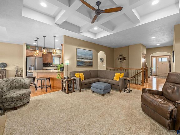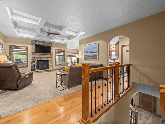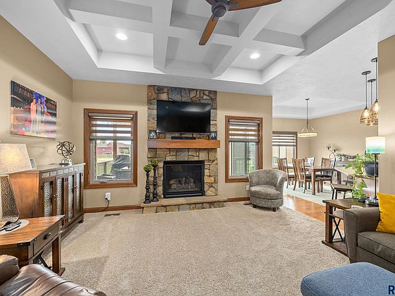 Check out this stunning ranch style home in west Sioux Falls, walking distance to Discovery Elementary and Memorial Middle School! Well maintained and beautifully designed, the main floor features an open living room with detailed ceiling and gas stone fireplace. The huge kitchen is a cook’s dream with tons of cabinet space and a large walk-in pantry. The dining room leads to a fantastic covered deck to enjoy the private lot with no direct backyard neighbors and beautiful landscaping and a basketball court. Three bedrooms on the main, including a large primary suite with oversized stone shower, dual sinks and a WIC. An additional full bathroom and main floor laundry complete the spacious main floor. You have to see the size of the family room in the basement! Huge area to entertain, watch movies and more! Extra space to add office and toy room without taking away from the main living space. One large bedroom and ¾ bathroom complete the space. There is one unfinished room in the basement ready to become a 5th bedroom, office, or gym! This home offers no shortage of storage, so much space in the utility room for extra storage needs. The large 3 stall garage comes with heater and large landing zone for shoes, storage and more. New roof and gutters in 2022 and a radon mitigation system has already been installed. You just need to move in and enjoy!